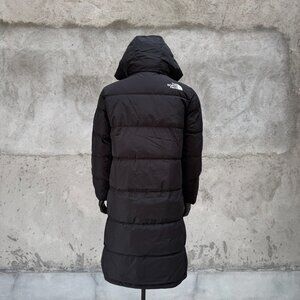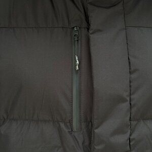 This long-length design features a hood and provides excellent warmth. It's all black and has a zipper closure.