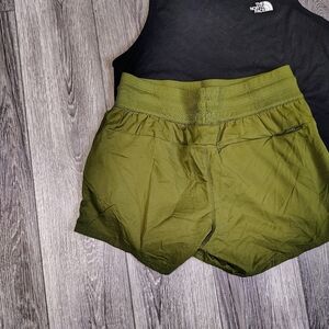 Sleek black tank top with olive green shorts. Ideal for active or casual days.