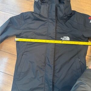 The North Face XS Summit Series Gore-Tex XCR Jacket. Excellent Condition. Black waterproof jacket with detachable hood. Features The North Face logo on chest and sleeve. See pics for measurements. Thank you!