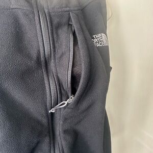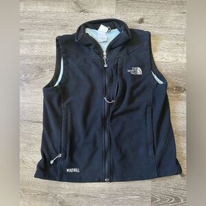 Black vest by The North Face. Features WindWall technology and zip pockets. Embroidered logo on chest.