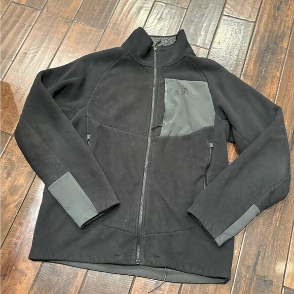 Experience ultimate comfort and functionality with The North Face Performance Jacket, featuring a soft fleece body and a water-resistant contrast panel. Designed in sleek black and gray tones, this jacket offers a high stand-up collar and elastic cuffs for a snug fit, making it perfect for outdoor adventures.
