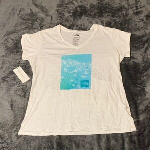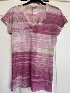 north face shirt, north face womens tee, north face v neck shirt, north face hiking shirt, outdoor shirt women, north face casual tee, hiking top women, athleisure shirt, north face striped shirt