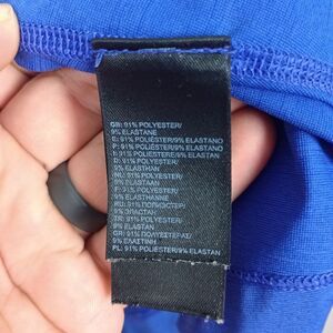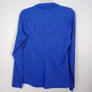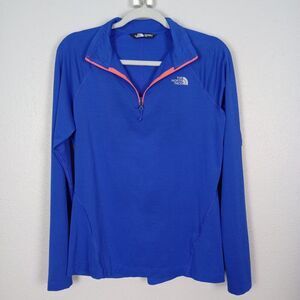 Stylish blue sweatshirt. Features pink zipper accents. Perfect for casual wear.