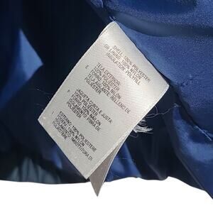 Description: The North Face Boys Gray Blue Puffer Coat, size L, used with great play condition. Features 100% polyester, designed for warmth and durability, perfect for outdoor play despite possible large dark stain on chest (coloring makes it hard to see), ideal for active kids. Smoke-free home, fast shipping, bundle to save!