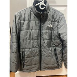 The North Face Boys' Reversible Mount Chimbo Hooded Reversible Jacket Gray