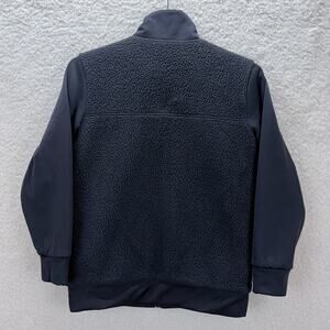 The North Face Boys Reversible Yukon Jacket in size M (10/12) is a versatile outdoor garment perfect for boys. Made from polyester with a sherpa fleece fabric type, this zip-up jacket features a logo accent and comes in a classic black color. With a reversible design, it offers multiple styling options suitable for casual occasions in winter, fall, and spring. Ideal for activities such as walking, school, and hiking, this mid-length jacket with long sleeves and a regular fit is a must-have for any outdoor-loving boy.