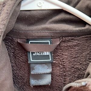 Cozy brown fleece jacket by The North Face. Perfect for chilly days.