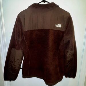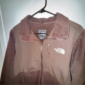 Cozy brown jacket. Full zip front. Soft material. Ideal for cool weather.