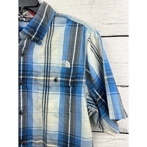 The North Face Button Down Camp Shirt Size Medium Plaid Short Sleeve Outdoors