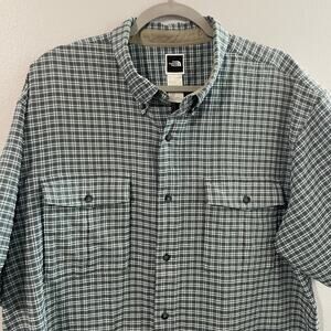 The North Face Button Down Shirt Plaid Seersucker Blue Brown White Men’s XL