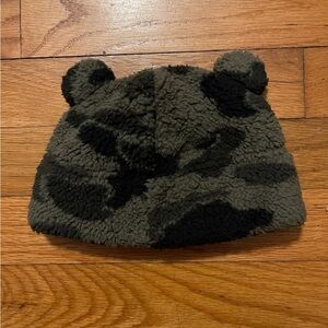 North face - Cute little bear ears fuzzy warm hat in a dark green Camo print