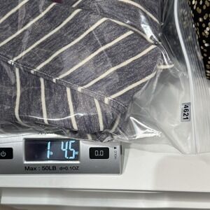 Color: Heathered navy/blue with off-white horizontal stripes