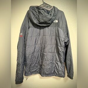 The North Face Summit Series down jacket. Well worn, but still has some life in it. Small hole on right sleeve as pictured.