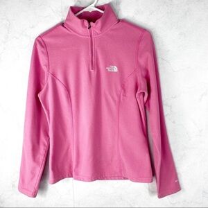 The North Face Classic Pink Quarter Zip Fleece Shirt. TKA 100. Soft, Thermally Efficient TKA 100 Series Fleece. Quick Drying. Lightweight. Brushed Face for a Soft Handfeel. Fabric resists pilling, fading, and maintains shape. Deep zip-front neck. No Stains or Rips. Cute & Comfy.