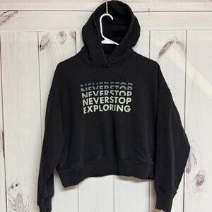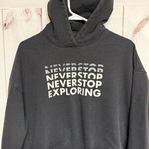 Style: Cropped Graphic Pullover Hoodie (“Never Stop Exploring”)