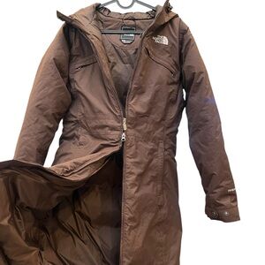 Stay warm and protected in harsh weather with this The North Face Women’s Medium HyVent Goose Down Long Parka Coat in a rich chocolate brown. Combining HyVent water resistant technology with the insulating power of premium goose down, this parka delivers reliable warmth and weather protection without compromising on style.