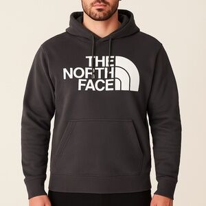 Elevate your cold-weather rotation with this classic North Face pullover hoodie in a versatile dark charcoal graphic style. Labeled men’s size M, it features a cozy fleece interior and a bold branded graphic, making it a favorite for both street and trail wear.