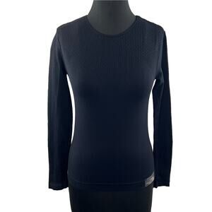 Dark gray tee with subtle logo print. Soft and comfortable fabric.