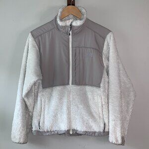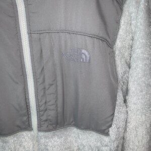 The North Face Denali Thermal White and Grey Fuzzy Fleece Full Zip Womens Jacket