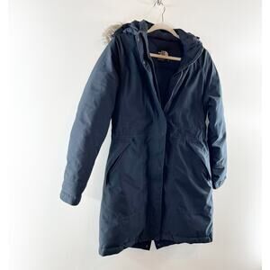 The North Face Dryvent Arctic Parka Down Jacket Faux Fur Hood Navy Blue Medium