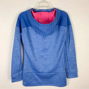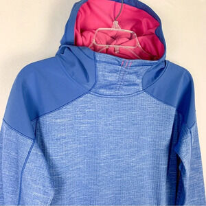 Fleece hoodie reinforced with soft-shell material at the shoulders and hood