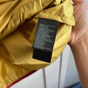 Brand new, never worn! This versatile pullover offers wind and rain resistance and packs into its own stylish fanny-pack-style kangaroo pocket. The pouch in the photo is red, but this jacket folds into a yellow pouch.