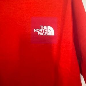 Bold red tee from The North Face. Features classic box design. Perfect for casual wear.