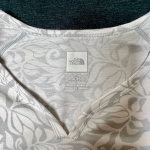 The North Face Fitted Tee White Floral T Shirt Short Sleeve V Neck Sz XL