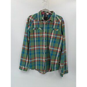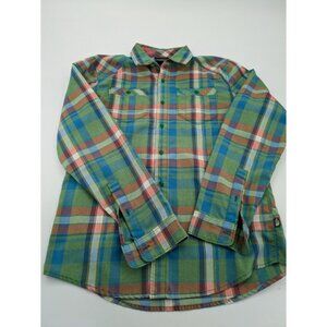 The North Face Mens Green Plaid Check Outdoor Flannel Shirt Size Small Pockets S