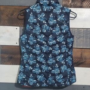 The North Face Flare Down Navy Blue Floral Flower Coupe Slim Fit Goose Vest XS