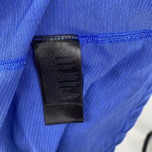The North Face FlashDry active top features a vibrant blue hue with a moisture-wicking fabric blend designed for high-performance outdoor activities. This short-sleeve shirt incorporates raglan sleeves for enhanced mobility and a flattering V-neckline. The lightweight construction includes mesh-like paneling on the upper back and sleeves to maximize breathability during intense workouts or hikes. A subtle tonal logo is located near the hem, maintaining a clean and athletic aesthetic.