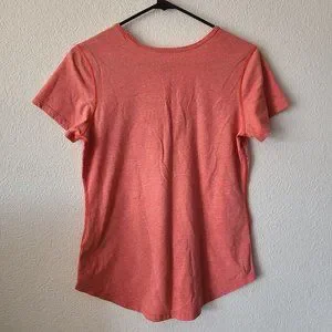 Great used condition The North Face pink/orange color short sleeve short with flashdry technology. Allover print on the front of the shirt. No stains/tears. Approximate measurements have been provided in photos for fit.