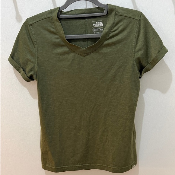This T-shirt is lightly used, with mild wear and tear, overall stone, fantastic condition! This is a dark green size medium Flashdry shirt by the brand The North Face! This is a high-quality athletic shirt, good for working out, hiking, golfing, or whatever activity you need to do! Comes from a non-smoking household.