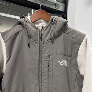 Keywords: The North Face, Fleece Jacket, Hoodie, Womens, Gray, White, Full Zip, Outdoor, Hiking, Athletic, Casual, Cozy, Warm, Jacket, Pullover