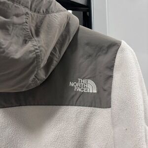 The North Face Fleece Denali Hoodie Jacket Women's Medium Gray White Full Zip