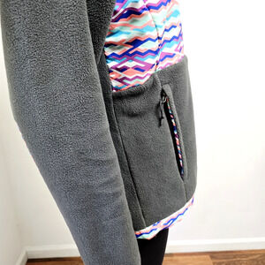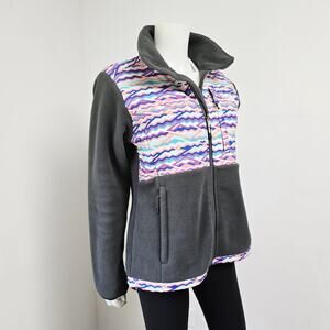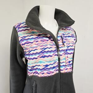 The North Face women's chevron print on gray fleece, full zip Denali jacket with pockets