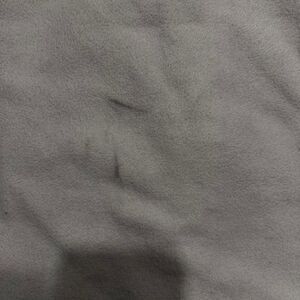 Condition: Fair pre-owned condition. Some minor discoloration and small marks on the back (see last photo). Full zip fleece jacket with gray sleeves and white body. Subtle embroidered logo on front and back.