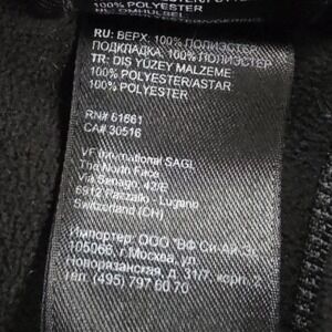 Logos/Branding: The North Face embroidered logo at left chest and back right shoulder