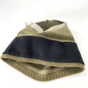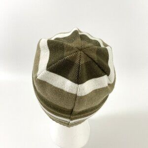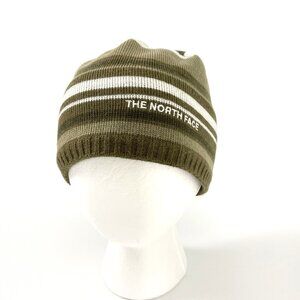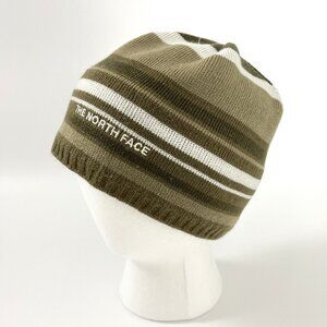 The North Face Striped Brown White Beige Beanie Hat. Fleece lined for added warmth.