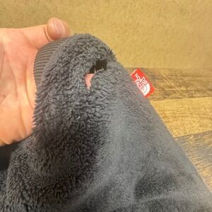 Small hole near exterior tag. light wear. Cozy fleece lounge pants from The North Face, perfect for relaxing at home or running errands in comfort. These pants feature a soft, plush fleece fabric, providing exceptional warmth and a gentle feel against the skin. The design includes a comfortable elastic waistband for a secure and flexible fit. The pants have a relaxed, straight-leg cut, offering a classic and versatile look.
