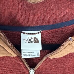 Gently Used The North Face Gordon Lyons ¼-Zip. This is a men's extra large. Red with brown accents. Quarter zip is brown in color. White The North Face box logo on the chest pocket. 100% polyester. Style NF0A5GL2.