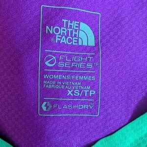 The North Face Flight Series Flash Dry Women's Top. Size XS. V-Neck, short sleeves. Green and purple. Pet friendly home.