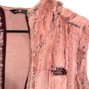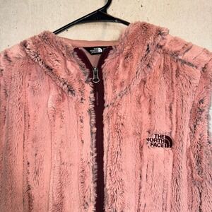 Keywords: The North Face vest, faux fur vest, hooded vest, sleeveless jacket, pink vest, cozy vest, women's vest, outerwear, layering piece, casual vest, stylish vest, fall fashion, winter fashion