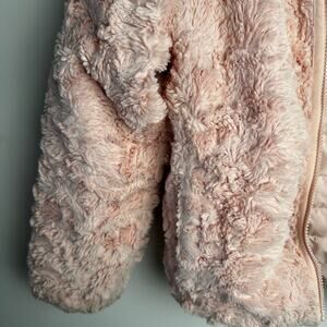 The North Face Girl Reversible Jacket Pink Fur reversible sherpa Jacket has stains