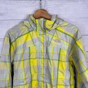 The North Face Girls 14/16 Large Hyvent Hooded Rain Jacket Yellow Plaid Check