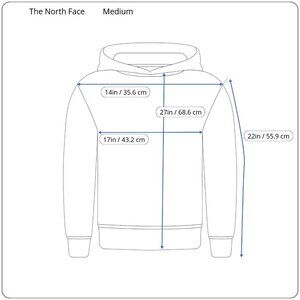 Medium size measurements: chest = 17 inches, shoulder to bottom = 27 inches, sleeve length = 22 inches