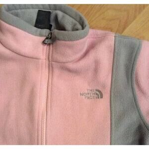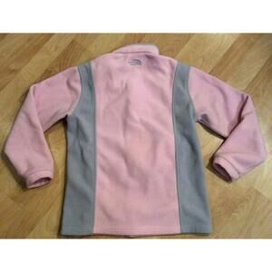 The North Face Girl's size large 14/16 pink and grey zip front fleece jacket. Please go by my description for size. In excellent condition from a smoke free home.