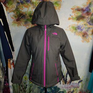 The North Face Girls Gray Hooded Jacket With Pink Accents