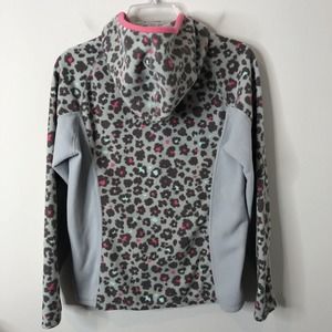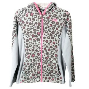 The North Face Girls' Gray Pink Animal Print Full Zip Fleece Hoodie Size XL