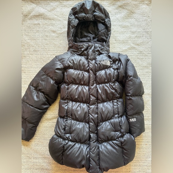 The North Face Girls Hooded Black Puffer 550 Goose Down Jacket